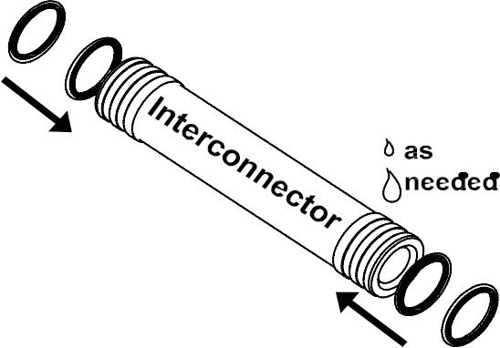 (2) 在膜元件連接件上裝上 O 型圈,安裝時涂上甘油潤滑,并小心的安裝防止 O 型圈被刮損。在插入產(chǎn)水管之前,將組裝好的適配器放在一個干凈的地方。