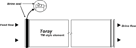 為了方便確定方向和說明,東麗膜元件在外殼內(nèi)有箭頭標(biāo)示方向。此箭頭并不表示為必須遵守的安裝方向。