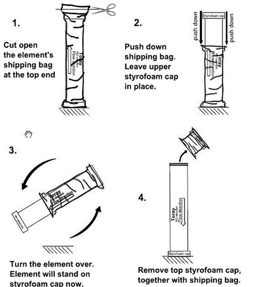 (4) 剪開膜元件的包裝袋,并準(zhǔn)備裝填,請參考如下示意圖。