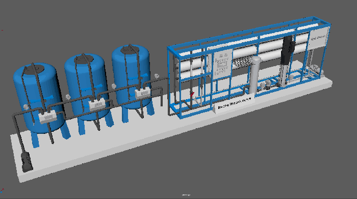 一級(jí)RO反滲透水處理設(shè)備3D模型圖