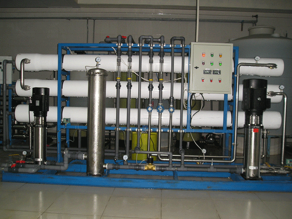 水機(jī)器為反滲  反滲透設(shè)備應(yīng)用膜分離技術(shù),能有效地去除水中的帶電離子、無機(jī)物、膠體微粒、細(xì)菌及有機(jī)物質(zhì)等。是高純水制備、苦咸水脫鹽和廢水處理工藝中的最佳設(shè)備。廣泛用于電子、醫(yī)藥、食品、輕紡、化工、發(fā)電等領(lǐng)域。鑫富淶反滲透設(shè)備是將原水經(jīng)過精細(xì)過濾器、顆粒活性碳過濾器、壓縮活性碳過濾器等,再通過泵加壓,利用孔徑為1/10000μm(相當(dāng)于大腸桿菌大小的1/6000,病毒的1/300)的反滲透膜(RO膜),使較高濃度的水變?yōu)榈蜐舛人?同時(shí)將工業(yè)污染物、重金屬、細(xì)菌、病毒等大量混入水中的雜質(zhì)全部隔離,從而達(dá)到飲用規(guī)定的理化指標(biāo)及衛(wèi)生標(biāo)準(zhǔn),產(chǎn)出至清至純的水,是人體及時(shí)補(bǔ)充優(yōu)質(zhì)水份的最佳選擇.由于RO反滲透技術(shù)生產(chǎn)的水純凈度是目前人類掌握的一切制水技術(shù)中最高的,潔凈度幾乎達(dá)到100%,所以人們稱這種產(chǎn)透純凈水機(jī)。