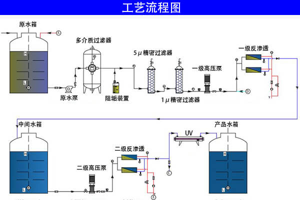 后處理系統(tǒng)是在反滲透不能滿足出水要求的情況下增加的配置。主要包括陰床、陽床、混床、殺菌、超濾、EDI等其中的一種或者多種設(shè)備。后處理系統(tǒng)能把反滲透的出水水質(zhì)更好的提高,使之滿足使用要求。